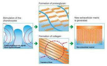 If the potential streaming is the signal for chondrocytes to produce new matrix, the same effect can be obtained by exposing the joints to an electromagnetic field, producing currents which stimulate those of the organism. Administration in this way of a low strength pulsed signal at a frequency similar to the biological one that is capable of creating an electrical field in the joint, prompting the regeneration of the cartilaginous tissue, and thus conferring physical chondro-protection.